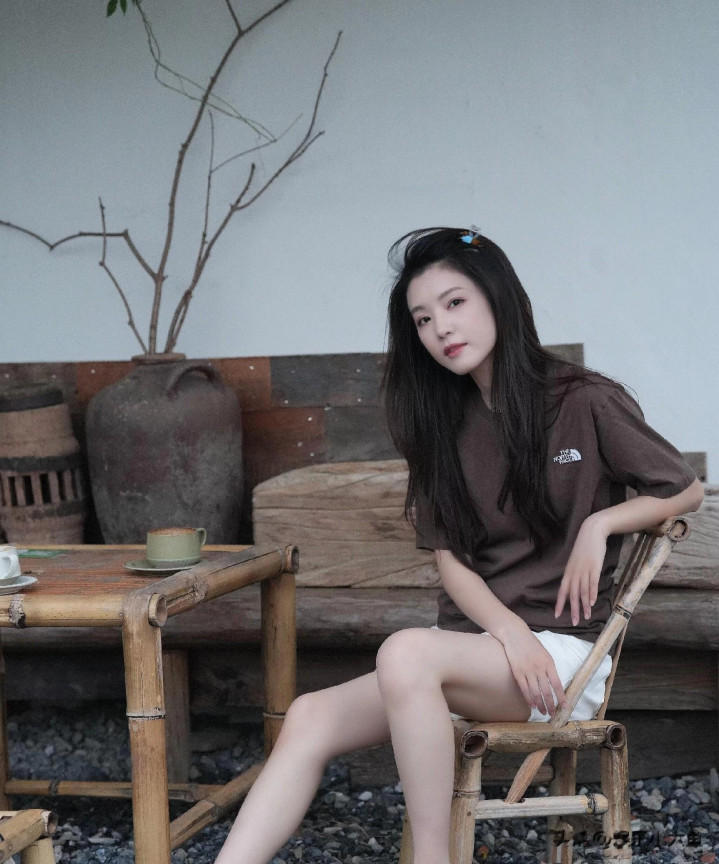 李云霄分享双节美照, 穿咖色短袖搭配白色短裤, 腿又白又嫩