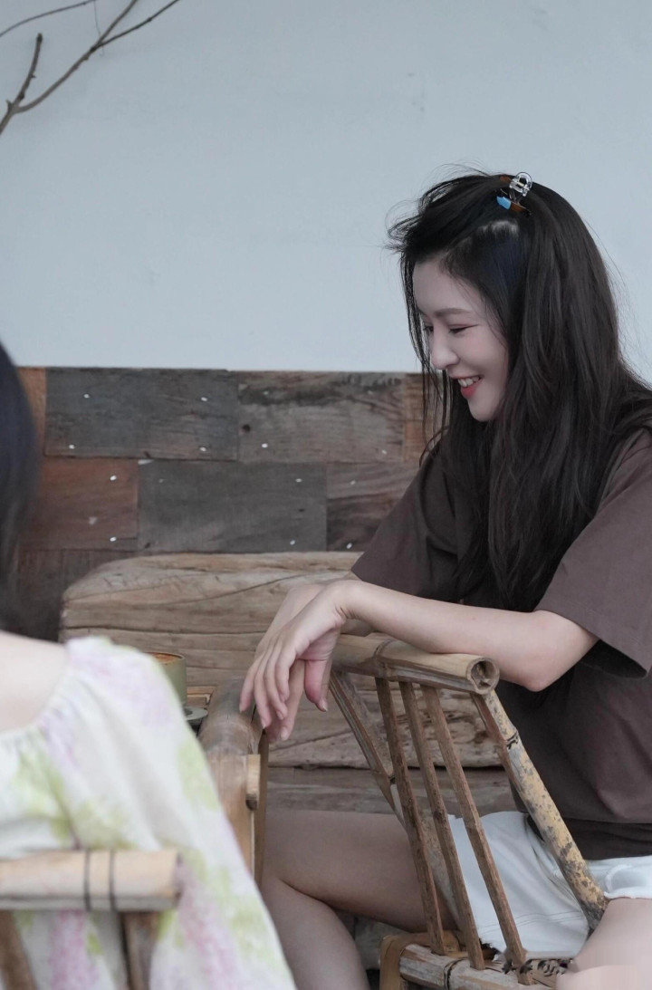 > 李云霄分享双节美照, 穿咖色短袖搭配白色短裤, 腿又白又嫩