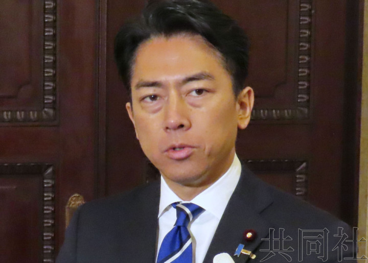当地时间12月12日,小泉进次郎在记者会上发言。共同社